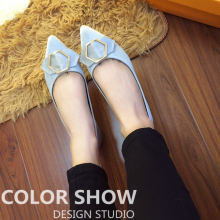 2016秋款新品欧洲站帅气百搭金属皮带扣尖头小单鞋浅口平底鞋女鞋