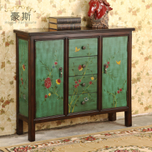 绿色彩绘田园斗柜餐边柜家具边柜门厅柜玄关柜装饰柜新款促销特价