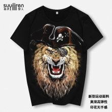 3D动物印花潮男夏装情侣装个性狮头豹头短袖T恤狮子半截袖大码