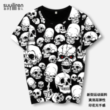 日系潮牌西海岸朋克恶魔骷髅机车半截袖嘻哈男女短袖T恤大码