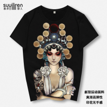潮男士夏季短袖T恤京剧脸谱bf风印花中国风大码情侣装半袖衣服