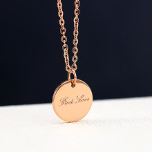 日韩圆牌LOVE项链女 简约经典大牌钛钢镀18K玫瑰金吊坠锁骨链短款