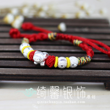 S999足银3D硬银十二生肖猴鸡本命年红绳纯银开运转运手工编制手链