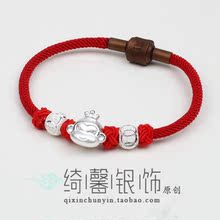 3D硬银纯银足银十二生肖三六合串珠猴鸡本命年路路通手链红绳礼物