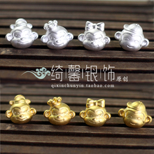 3D硬银999足银亲嘴鱼接吻鱼纯银手链小鱼串珠配件送女友宝宝满月