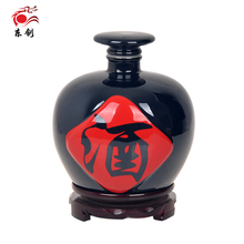 景德镇陶瓷酒坛5斤黑釉酒坛子2.5L大肚球瓶密封酒壶复古酒瓶酒具
