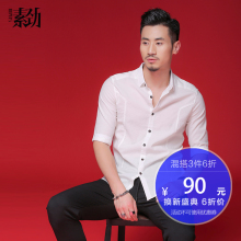 素劲2017夏新款5分袖男士衬衣 时尚白色男装衬衫 简约上衣2839