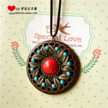 【萝莉宝贝鑫】 韩国女 文艺民族风 简约百搭圆木质吊坠长项链