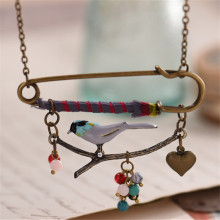 【萝莉宝贝鑫】韩国百搭简约卡通小鸟树枝 桃心胸针复古长款项链