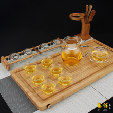 耐热玻璃功夫茶道 整套茶具 竹制茶盘茶杯盖碗组合易泡架套装包邮