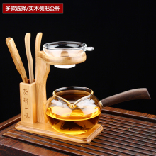 侧把公道杯玻璃茶海加厚耐热公道杯黑檀花梨木侧把分茶器公杯茶具
