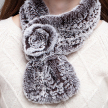博萨度秋冬獭兔毛围巾围脖女真皮草编织单花加厚保暖妈妈围巾