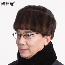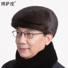 冬季男士整皮水貂皮草帽子中老年人冬天户外保暖老人帽真皮棉帽