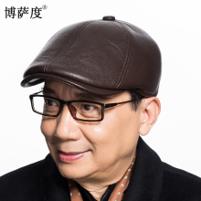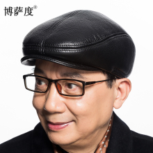 博萨度真皮帽子男士冬中老年帽子年皮鸭舌帽休闲贝雷帽冬季前进帽