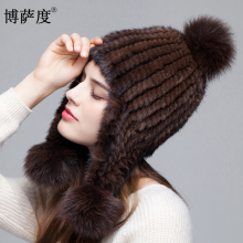 博萨度水貂帽子女士冬季皮草帽子真皮帽保暖护耳编织雷锋帽女冬天