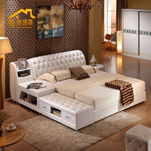 豪盛蒂皮床现代真皮床1.8米双人床皮艺床软体床榻榻米储物婚床