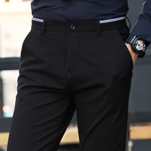 秋天商务男裤弹力青年休闲裤男修身直筒秋季弹力西裤大码长裤免烫