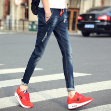 春季韩版弹力九分牛仔裤男士哈伦小脚裤青少年修身九分裤 9分潮男
