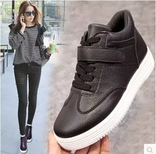 欧洲站2017新款女鞋真皮魔术贴高帮鞋女秋休闲鞋厚底内增高运动鞋