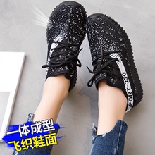 2017夏韩版飞织运动平底休闲鞋透气跑步轻便健身鞋镂空网面慢跑鞋