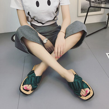 2017新款平底凉拖鞋外穿舒适绸缎交叉带懒人拖鞋平跟欧美女鞋夏潮