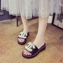 2017新款松糕厚底拖鞋女夏天时尚外穿坡跟凉鞋韩版水钻蝴蝶结凉拖