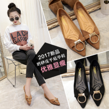 2017春夏新款单鞋女韩版时尚女鞋金属扣尖头平底鞋水钻浅口豆豆鞋