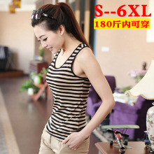 纯棉吊带背心女 夏打底 韩版U领条纹上衣 长款无袖百搭宽松黑白色