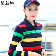 2017新款春夏装翻领长袖t恤女上衣时尚休闲运动polo衫纯棉印花