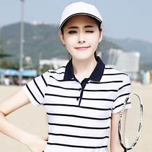 翻领短袖T恤女夏装条纹棉质保罗衫上衣大码宽松显瘦休闲运动衫