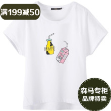 森马 短袖T恤女2017夏装新款半袖上衣宽松印花上衣潮 19047000202