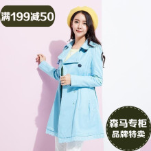 森马 双排扣中长款风衣2016春装女士便服直筒腰带外套10115100501