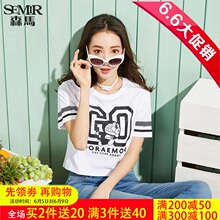 森马短袖T恤女修身韩版夏装女士圆领体恤几何字母印花纯棉直筒潮