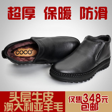 冬季男士正品羊毛牛皮棉鞋皮毛一体真皮中老年爸爸鞋平底高帮棉鞋