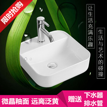 卫浴 方形台上盆 侧边隐藏式下水台盆 洗脸盆 洗手盆 陶瓷盆台盆