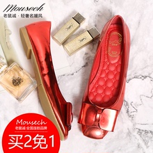 老鼠诚2017春季平底鞋女单鞋婚鞋方头浅口鞋四季鞋芭蕾舞鞋蝴蝶结