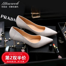 老鼠诚2017春秋浅口尖头单鞋女高跟鞋细跟6CM白色OL百搭性感气质