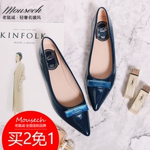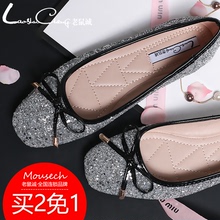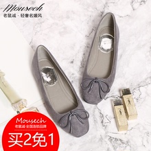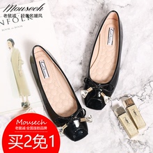 老鼠诚2017春新款浅口方头单鞋平底鞋女公主舒适百搭蝴蝶结芭蕾舞