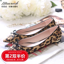 老鼠诚2017春季单鞋女尖头平底鞋女单鞋潮豹纹蝴蝶结优雅舒适百搭