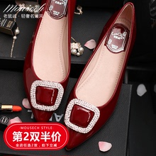 老鼠诚2017春季新品平跟单鞋平底鞋女尖头浅口韩版婚鞋水钻甜美潮