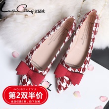 老鼠诚2017春夏尖头平底鞋女单鞋浅口女鞋欧美千鸟格格子蝴蝶结潮