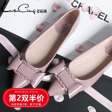 老鼠诚2017春季单鞋平底鞋女尖头平跟瓢鞋船鞋蝴蝶结甜美舒适