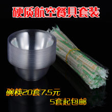 川河一次性餐具航空水晶餐具套装硬塑料水晶透明餐具20个碗筷套装