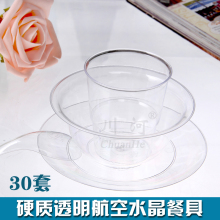 结婚喜事一次性航空水晶餐具套装硬质烧烤碗碟杯勺四件套30套包邮