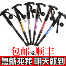户外野营登山拐杖伸缩 T型3节带锁超轻减震登山拐棍碳素滑雪手杖