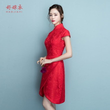 敬酒服新娘2017新款中式结婚敬酒旗袍宴会显瘦敬酒礼服红色短款春