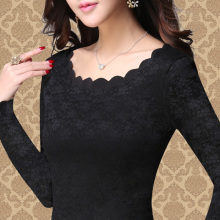 春装蕾丝衫上衣修身加绒加厚保暖雪纺衫女长袖蕾丝打底衫t恤小衫