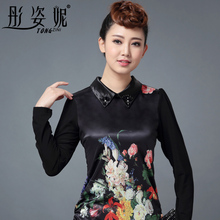 2017春装印花中年加绒打底衫女装妈妈装韩版娃娃领长袖打底蕾丝衫