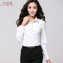 特大码女装胖mm秋装新款长袖衬衣OL职业白衬衫加肥加大码工作服女