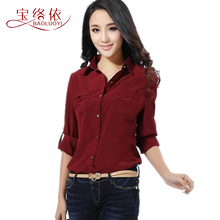宝络依加大加肥码胖mm秋装新款OL职业女装显瘦长袖衬衣胖妹妹衬衫